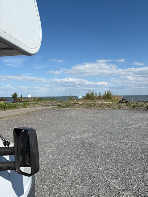 Nach einer Nacht auf dem Parkplatz des Super U in Marans, der leider an einer nächtlich stark befahrenen Straße lag, kurz einkaufen und Weiterfahrt zur größten Wanderdüne Europas, der Dune du Pilat. Genaues Ziel war Pyla Camping, direkt am südlichen Ende der Düne gelegen. Der zugewiesene Platz war dann auch die dritte Parzelle hinter der Düne, der Wahnsinn das Ding. Der Campingplatz ist neu eingerichtet worden. Warum? Wer kann sich an die Waldbrände 2022 in Frankreich erinnern? Ich mich sehr stark, da ich auf der damaligen Tour auf dem Rückweg durch den Rauch gefahren bin, der kilometerweit auf der Autobahn quer zog. Somit sind im Bereich der Düne ganze fünf Campingplätze zu 90 % abgebrannt. Einen haben wir gesehen, der erst gar nicht wieder aufgebaut wurde. Überall die verbrannten Bäume als Überbleibsel, oder nur noch als Stumpf vorhanden und eine Beleuchtung obendrauf. Fasst man die Bäume an, hat man schwarze Hände und bei Sonne mit hoher Luftfeuchtigkeit reichte es nach verbranntem Holz. Aber auf dem Camping Pyla hat man wahnsinnige Arbeit geleitet und schon sehr viel bewegt. Ja, hier und da muss man einfach sagen, muss noch was gemacht werden, aber das ist Klagen auf sehr hohem Niveau.