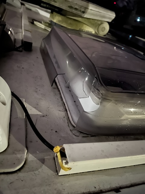 Was mich überrascht hat, dass die Dichtmasse an der Dachluke ringsherum außen schön trocken, aber an den Kontaktflächen, immer noch wie am ersten Tag, geschmeidig und klebrig, war. Scheint damals schon gute Produkte gegeben zu haben, denn ich würde sagen, dass die Dachhaube noch aus den 90igern stammte, vielleicht sogar Erstausstattung. An sich ja auch immer noch ein schickes Modell, das mit Aufstellmöglichkeit in alle Richtungen überzeugt und eine Zwangsbelüftung hat. Jetzt muss nur noch alles dicht halten 😉